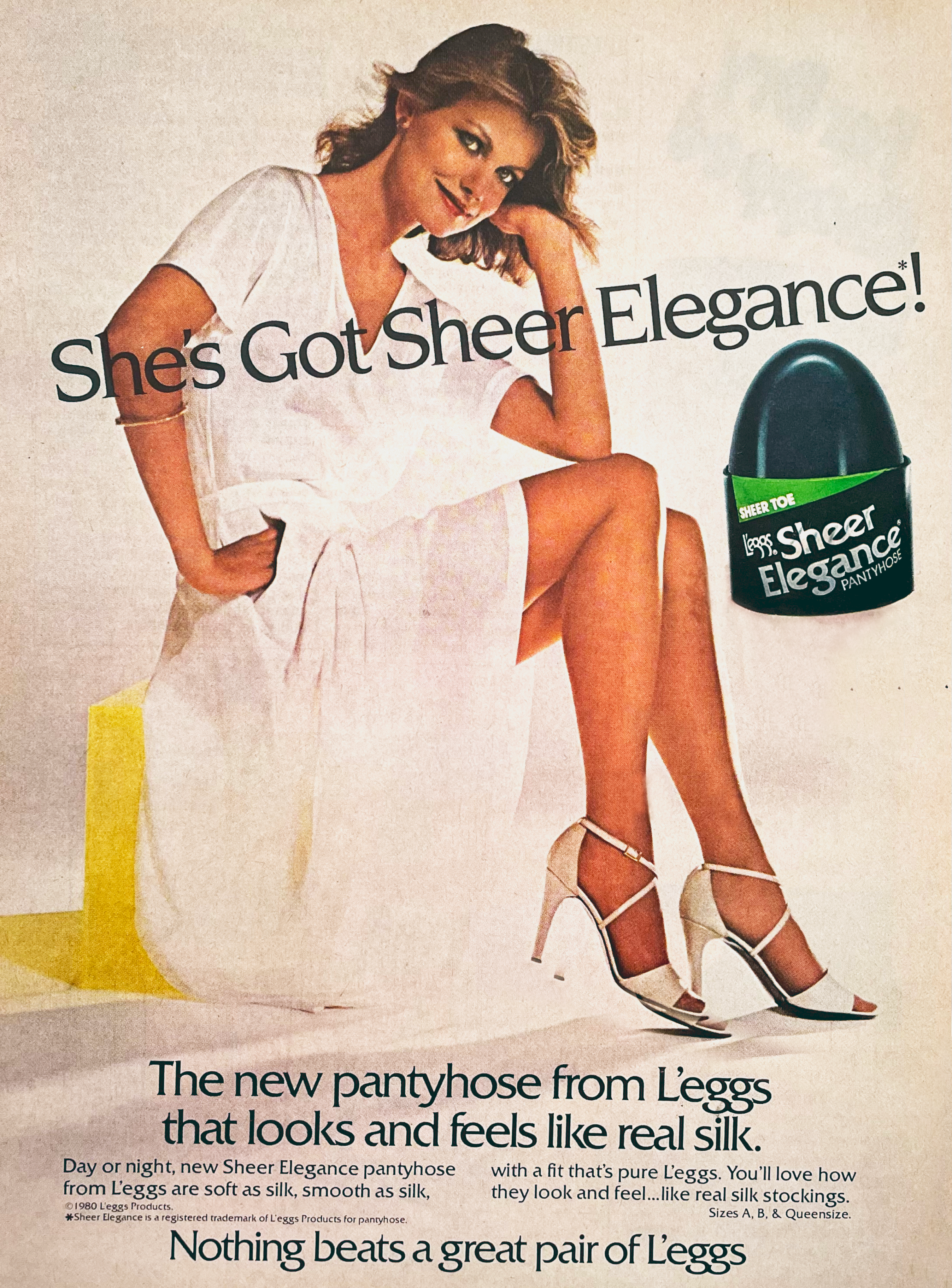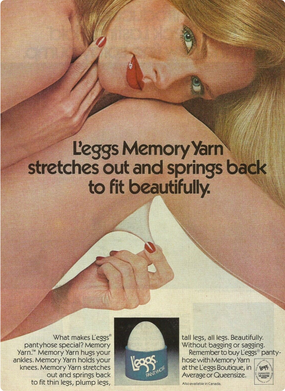 L’eggs delivered affordable and accessible memory yarn, graduated compression, run resistant technology to the mass market, all in the spirit of her enhancing her best asset: her legs.