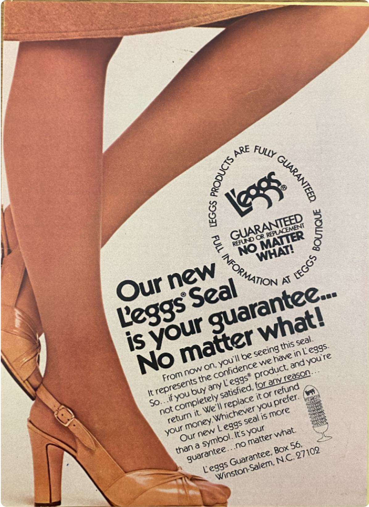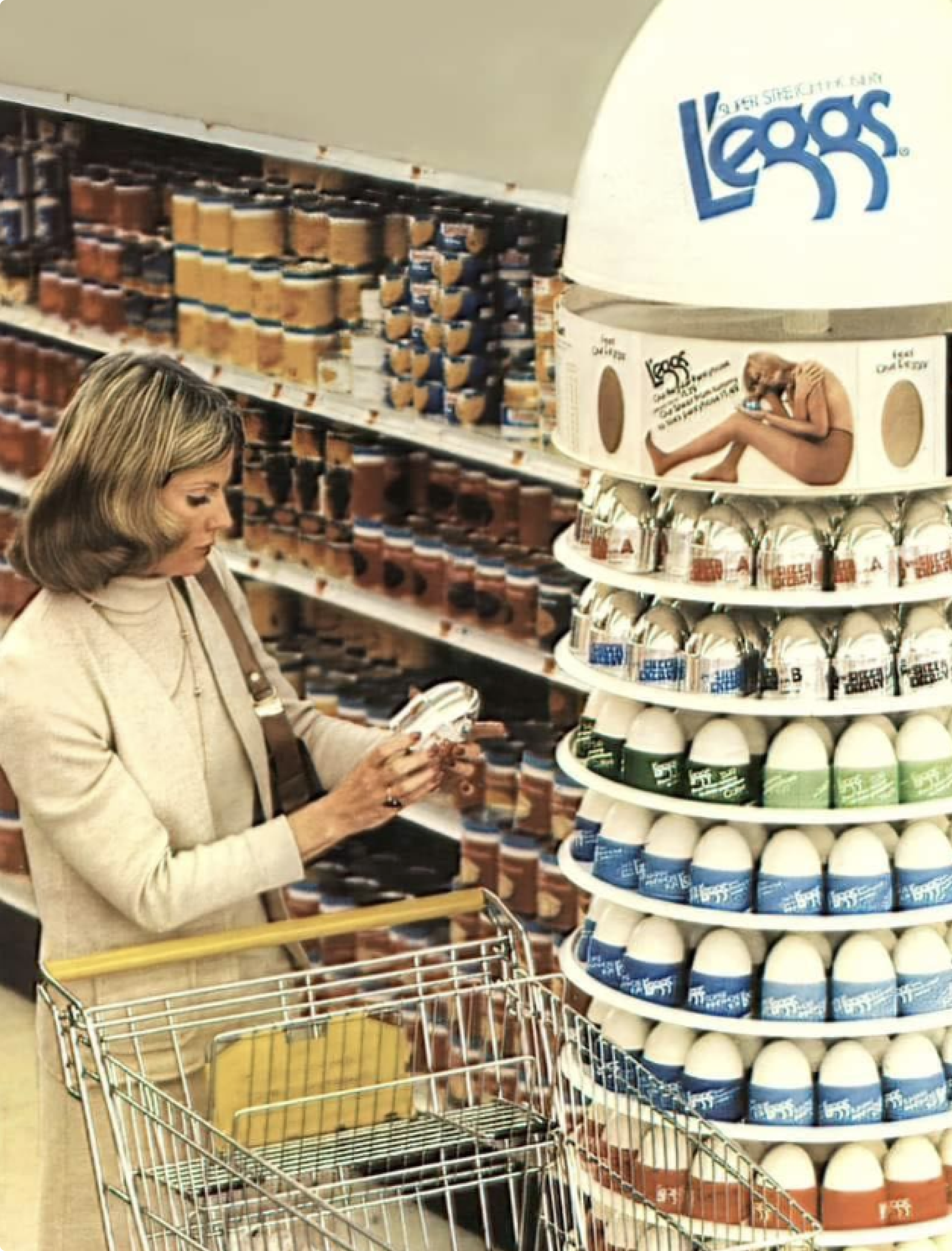 In 1969, L’eggs was the secret project of Hanes executive Robert Elbertson with one aim: build a brand for the new American woman. The brand became a nearly instant success with its unique, colorful packaging, the beautiful in-store displays, and clever taglines: “Nothing beats a good pair of L’eggs”.